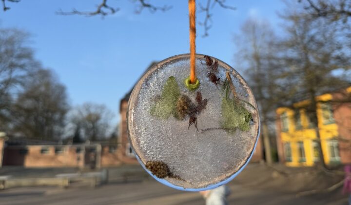 Die Vorschulkinder nutzten die anhaltend frostigen Januartemperaturen, um eigene Eisbilder herzustellen.Wasser wurde mit Naturmaterialien und Farbe kreativ gestaltet und in kleinen Gefäßen zum Gefrieren nach draußen gestellt.Die fertigen Eisbilder wurden  . . .
